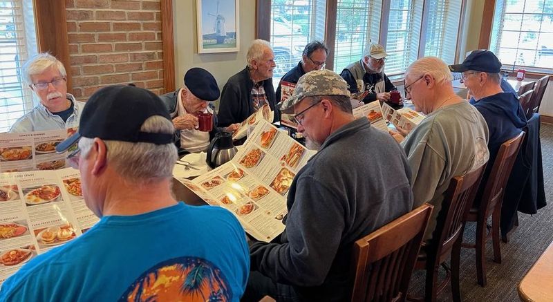 The brothers carefully regard their menues.